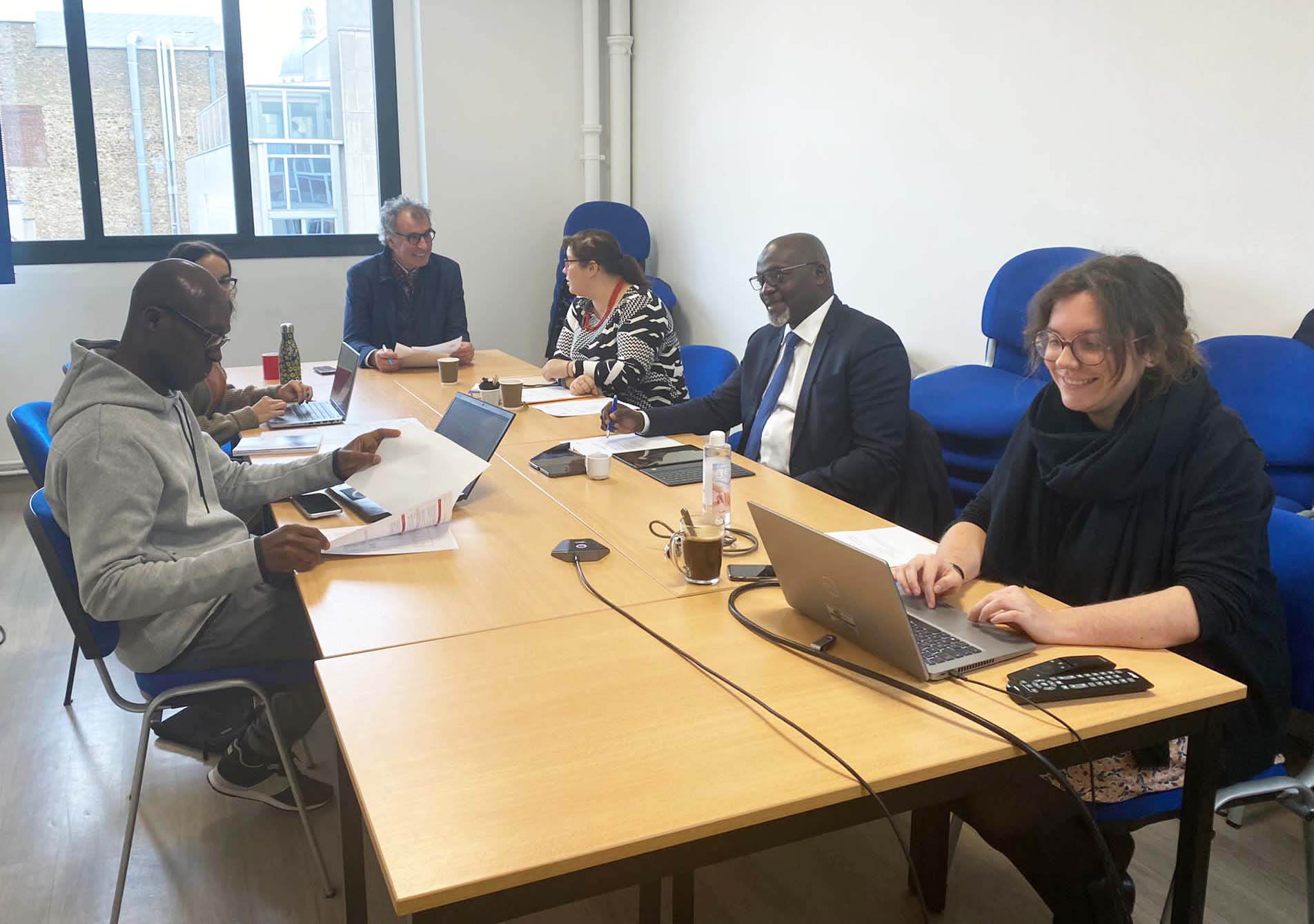 Le Secrétaire général de la CONFEMEN, le Professeur Abdel Rahamane BABA-MOUSSA, a été reçu ce 29 novembre au siège du Centre national d’étude des systèmes scolaires (CNESCO) à Paris, accompagné du Coordinateur du PASEC, M. Hilaire HOUNGPODOTE et de la Conseillère spéciale chargée des relations internationales et du partenariat, Mme Maria KANTCHEVA. Après une visite des locaux, l’équipe de la CONFEMEN a eu une séance de travail avec l’équipe du CNESCO composée de M. Jean-François CHESNE, Coordinateur exécutif, de Mme Juliette FANJAT, Chargée de mission et Responsable de l’organisation de la Conférence de consensus sur les mathématiques au primaire pour le compte du CNESCO. Ont participé également à distance pour le compte de la CONFEMEN, le Chargé du projet conférence de consensus, M. Adama Bologo et le Conseiller spécial chargé de la communication, M. Abobacar SY.